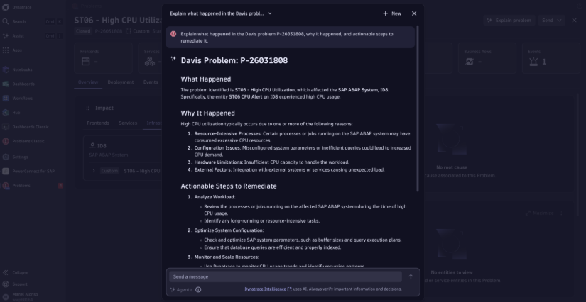 Our Fortune 500 customers already use PowerConnect and Dynatrace together to reduce MTTR and ensure that mission-critical processes, like order to cash, operate around the clock. With the latest Davis AI capabilities, that observability now extends to automated, contextual incident explanation that keeps pace with the complexity of modern SAP environments.